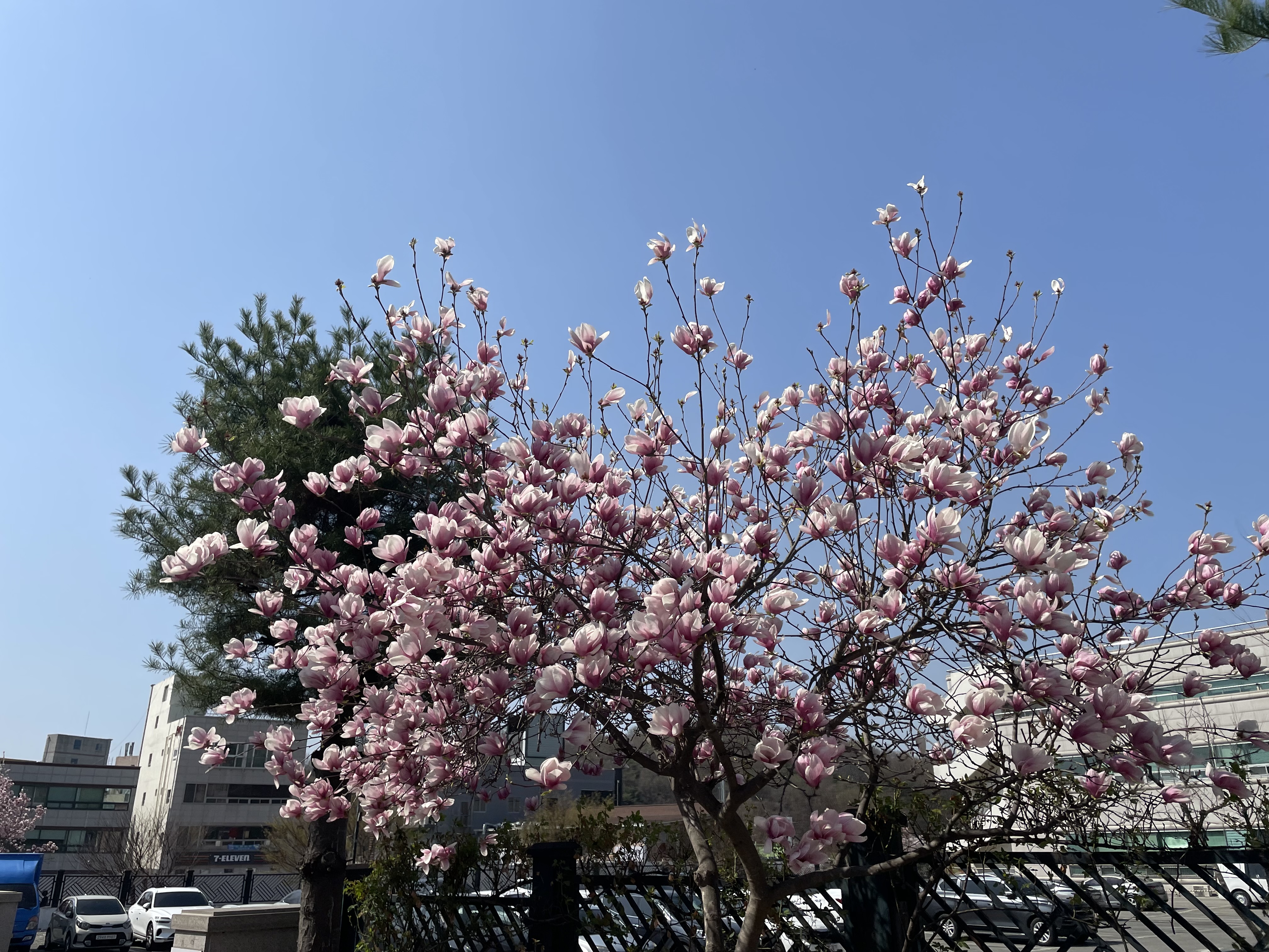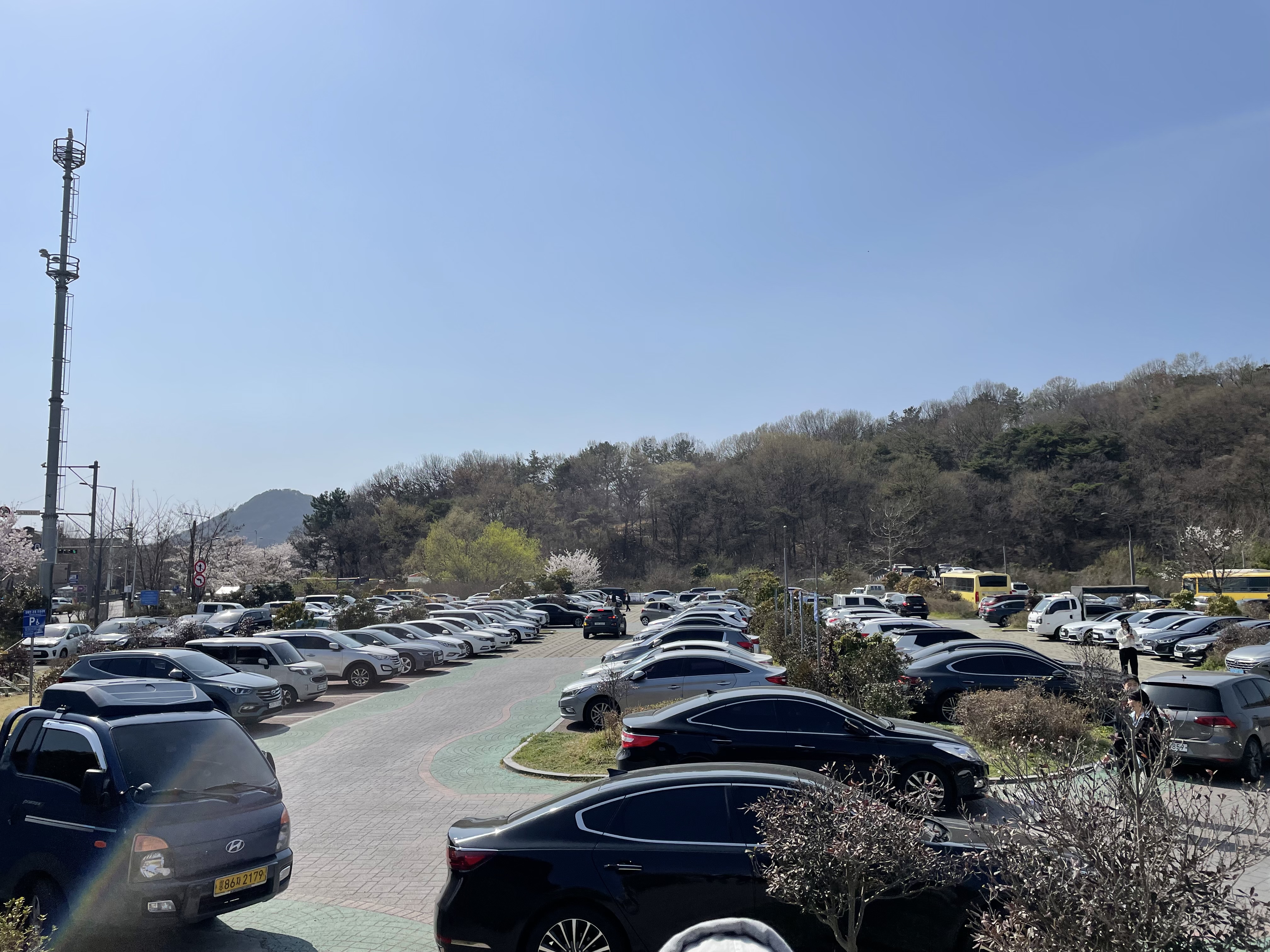 그럼에도 풍암호수공원을 찾는 도로며 주변 풍경은 봄 그 자체였다. 주말의 도로는 꽃을 보기 위해 찾은 많은 사람들에 지하철 공사까지 더해져 너무나 혼잡스러웠다. 주차장은 벌써 만석이라 입구부터 붐벼 주차장에 주차를 포기하고 인근 주택가 공용주차자리에 주차하고 걸어오기로 했다.
