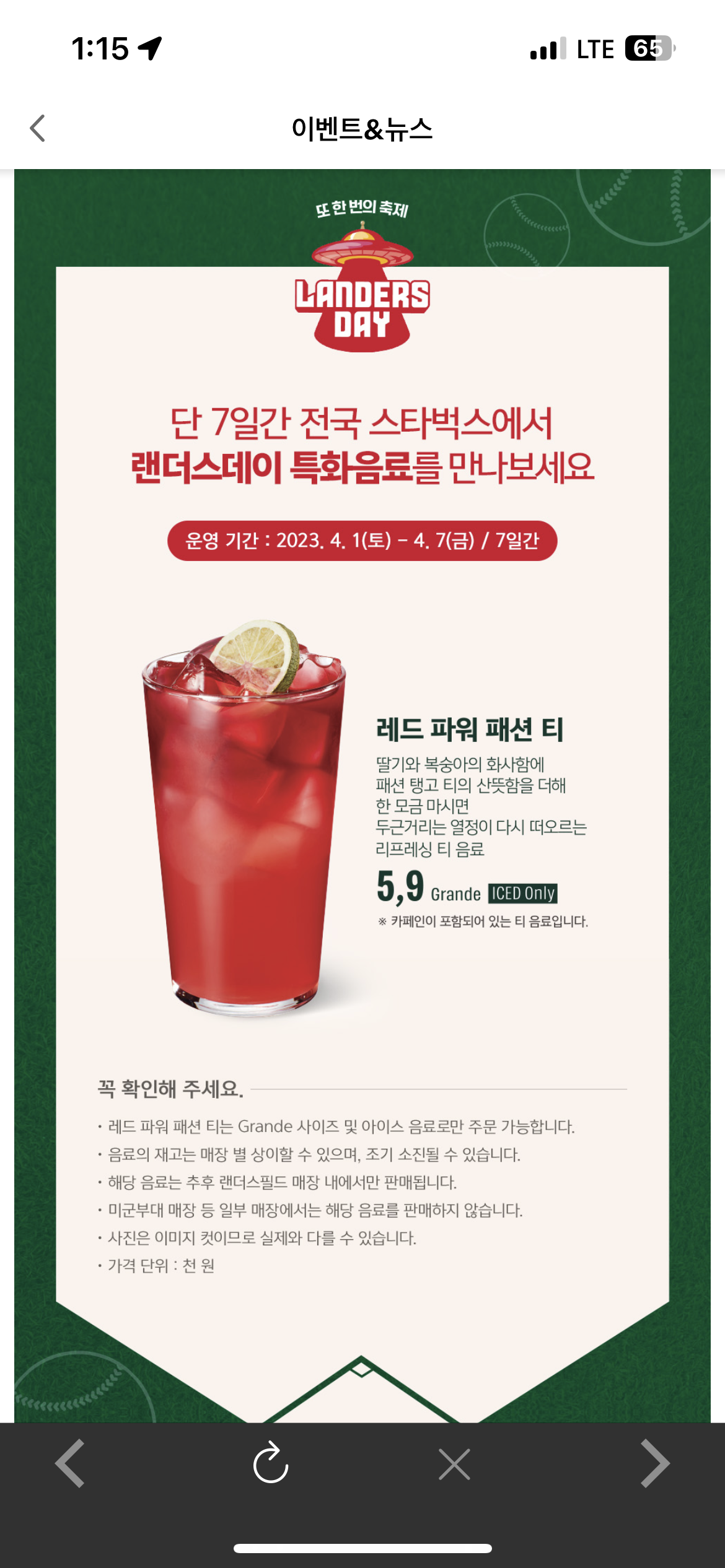 랜더스데이는 비록 이틀만 하지만 이 음료는 일주일간 맛을 볼 수 있다고 한다.