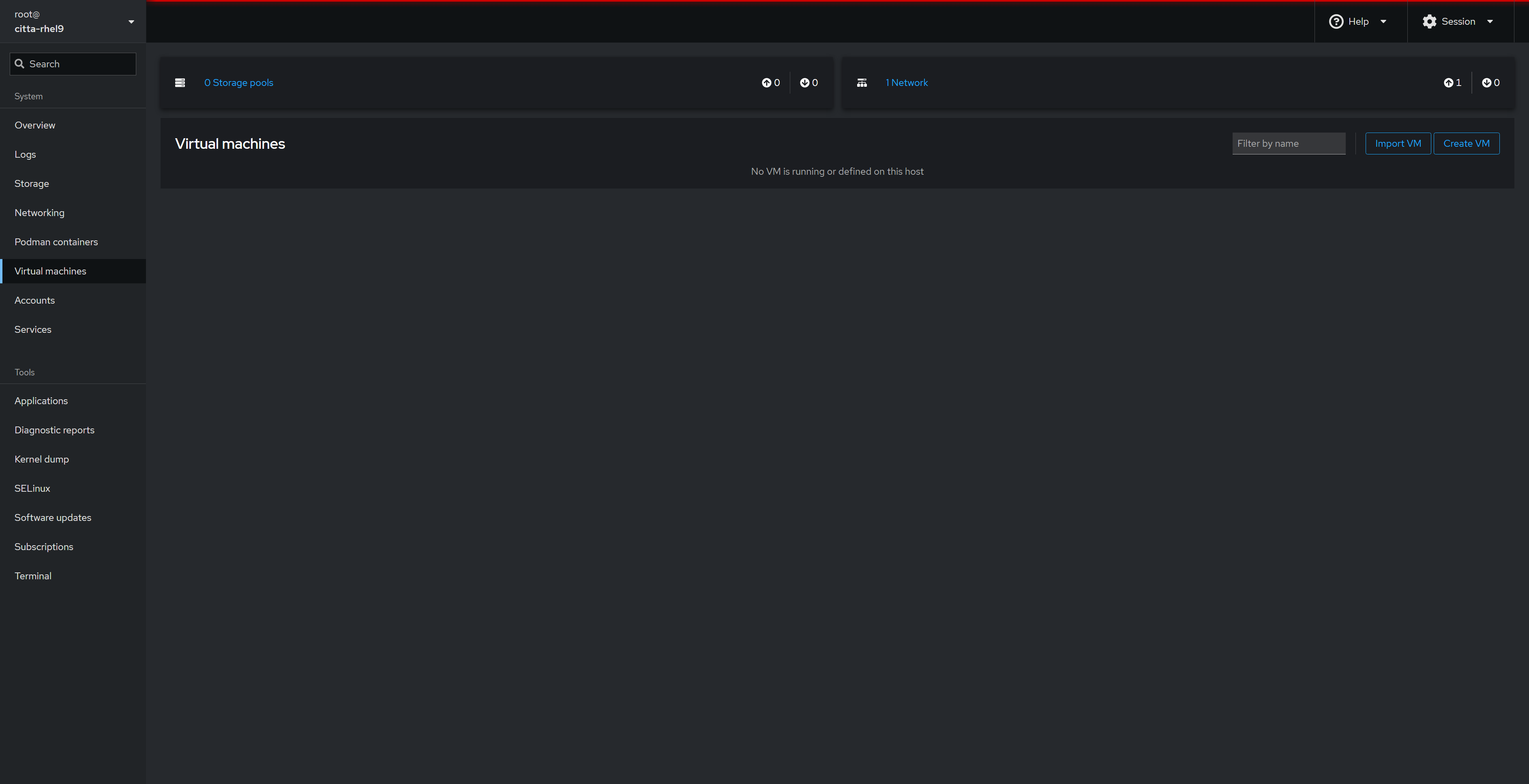 2. cockpit 설치 후 virtual machine 항목 보이기