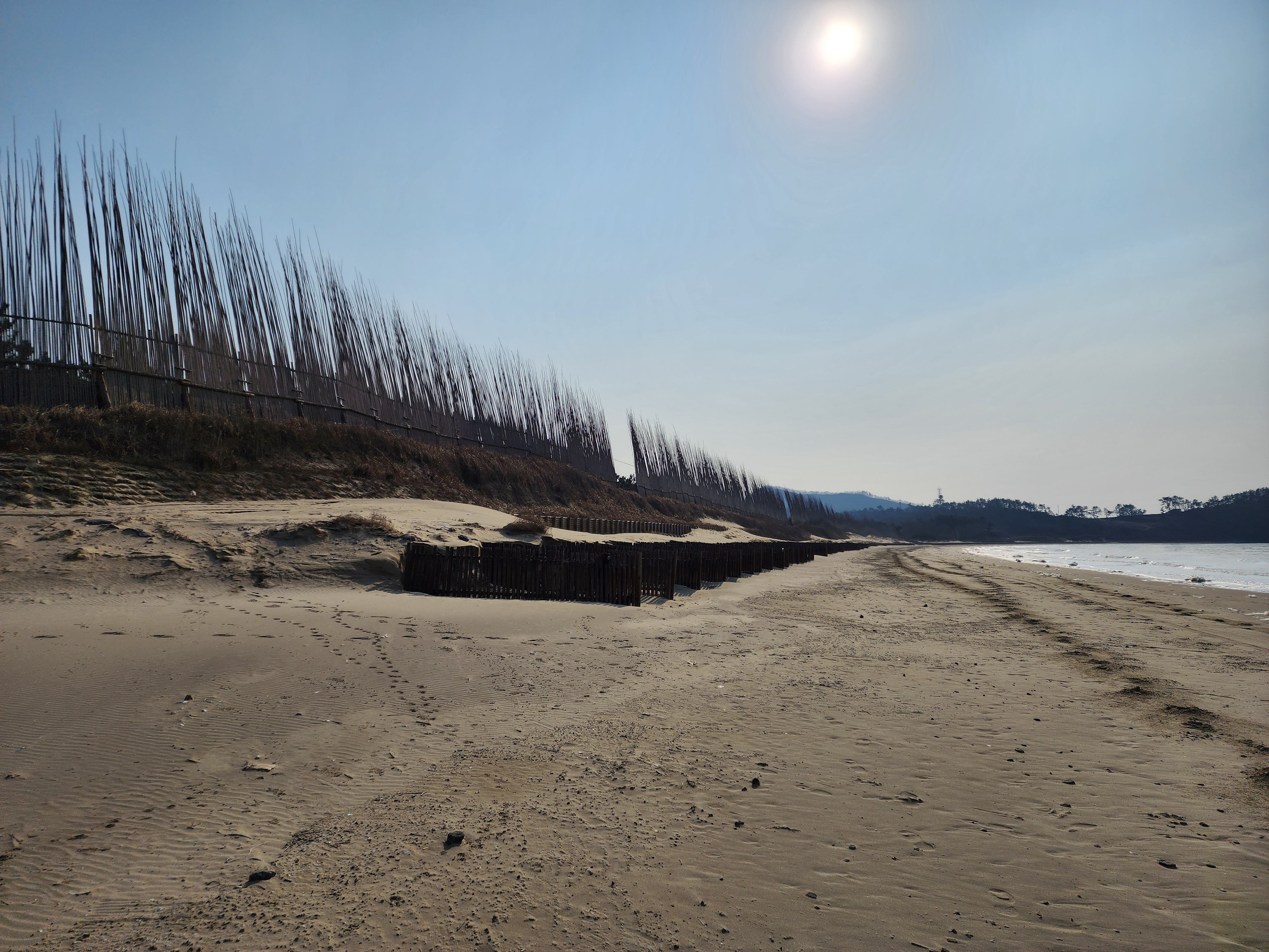 그 모래들이 멀리 날라가지 않게 잡기 위해 설치해놓은 모래포집기들이 있어 흔치 않은 모습을 볼 수 있다.