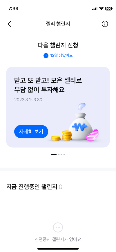 네 가지 챌린지 중 젤리를 이용한 투자 빼고 나머지 도전!