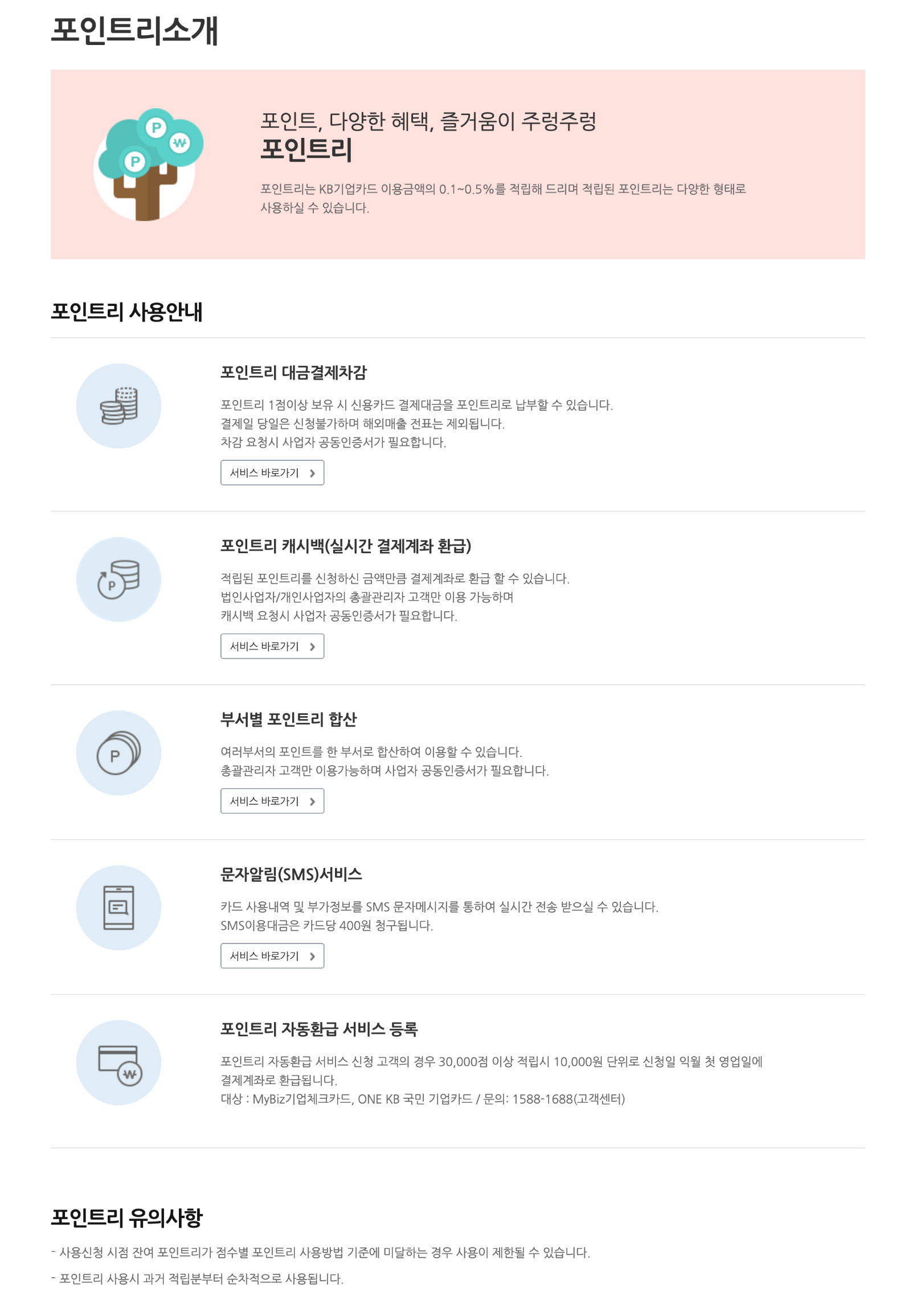 KB 포인트는 포인트리라고하는데 KB기업카드 이용금액의 0.1~0.5%를 적립된다.