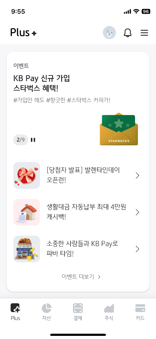 일전에도 kb 이벤트로 스타벅스 아메리카노 쿠폰을 받아서