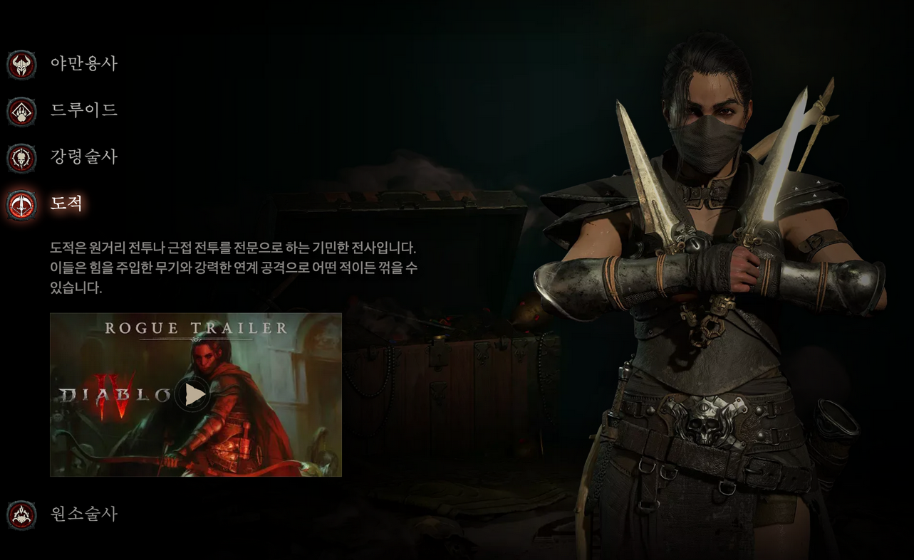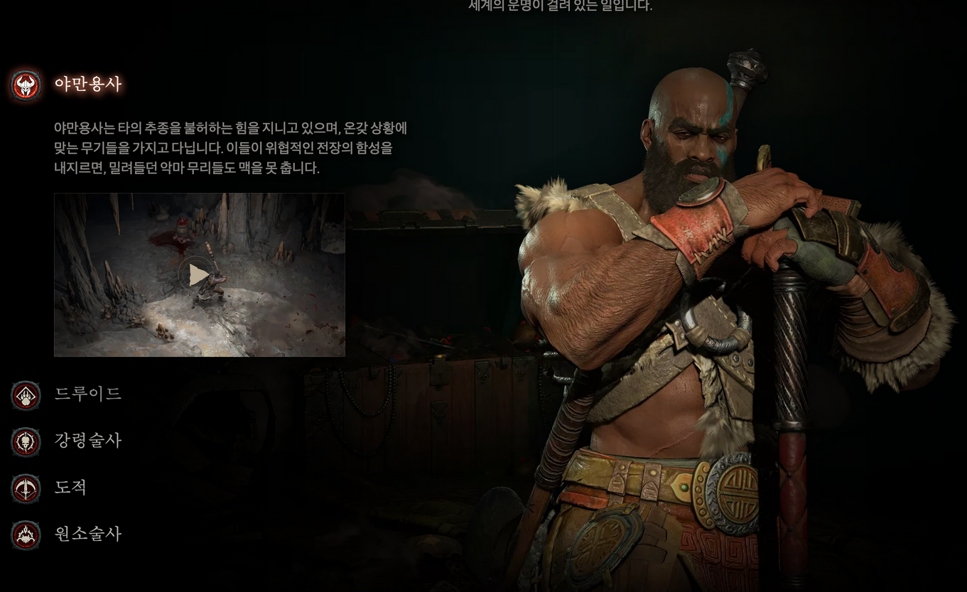 아래는 디아블로 공식 홈페이지의 직업 소개이다.