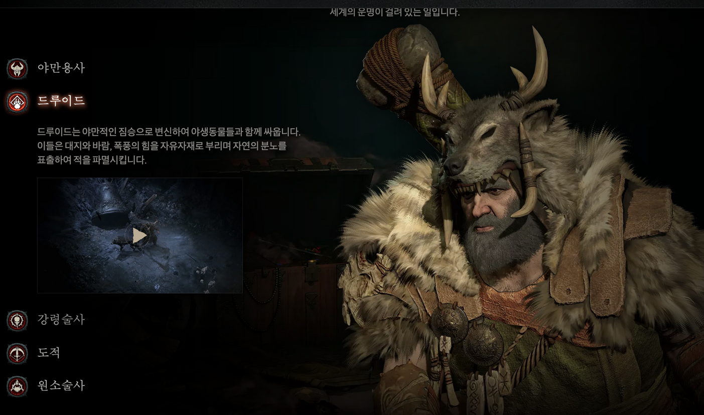 그리고 이번 디아블로4에선 기존에 봤던 직업들이