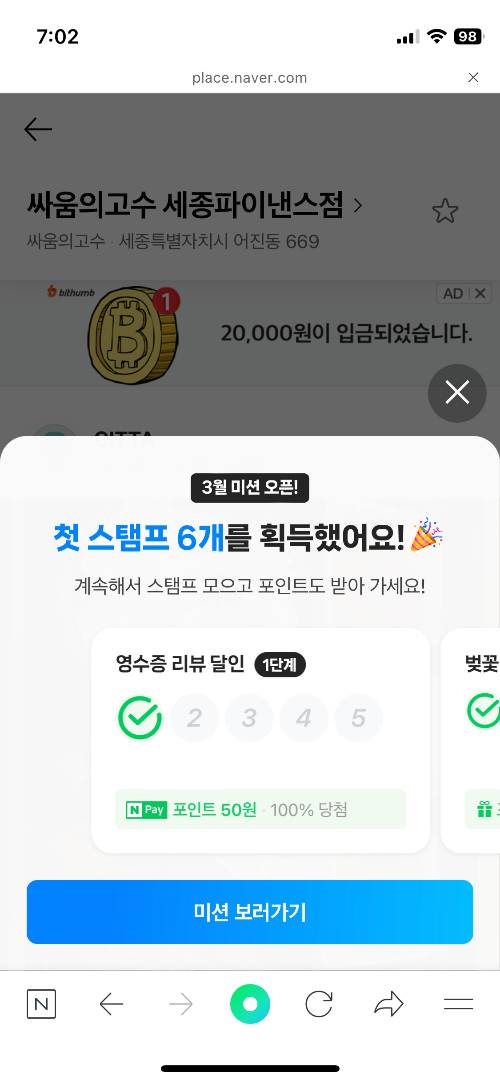 이 미션을 수행하면서 네이버 포인트를 모을 수 있는 것이다.