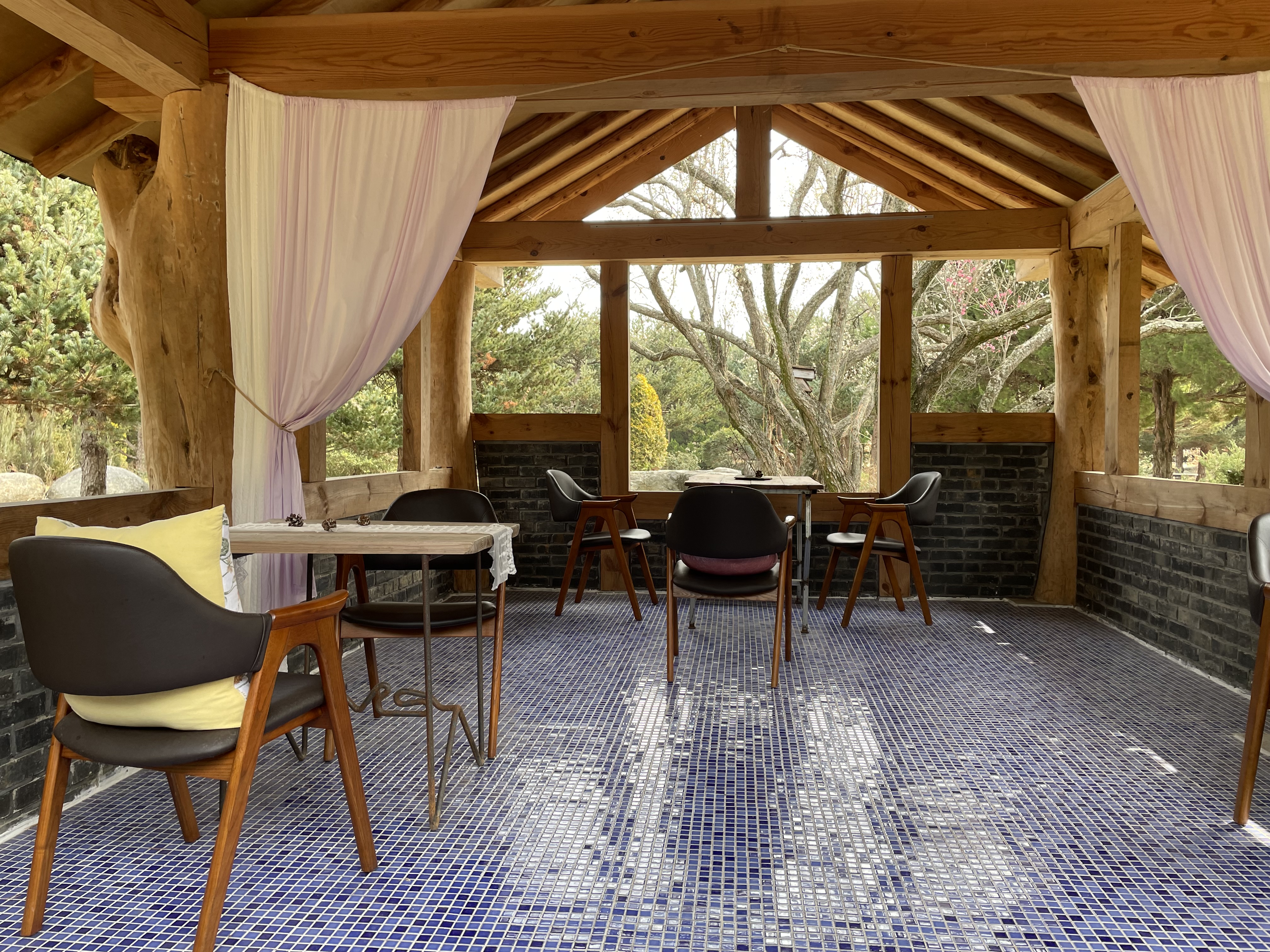 건물 내부와 밖에는 커피나 차를 마실 수 있는 자리들이 마련되어 있었는데