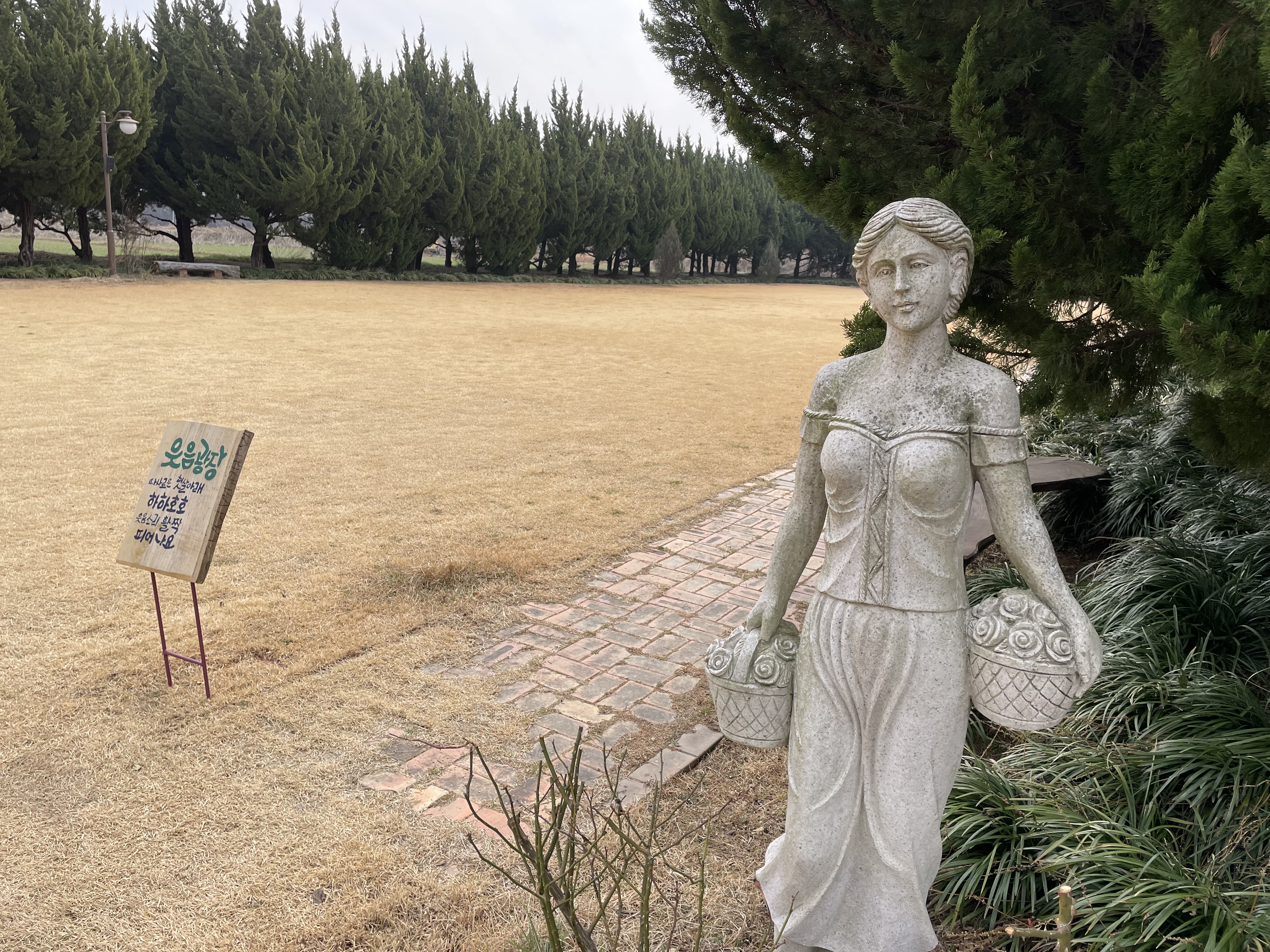 정원 초입부터 잘 정돈된 느낌과 향기 목서 사이로 조각상들이 자리해 있었다.