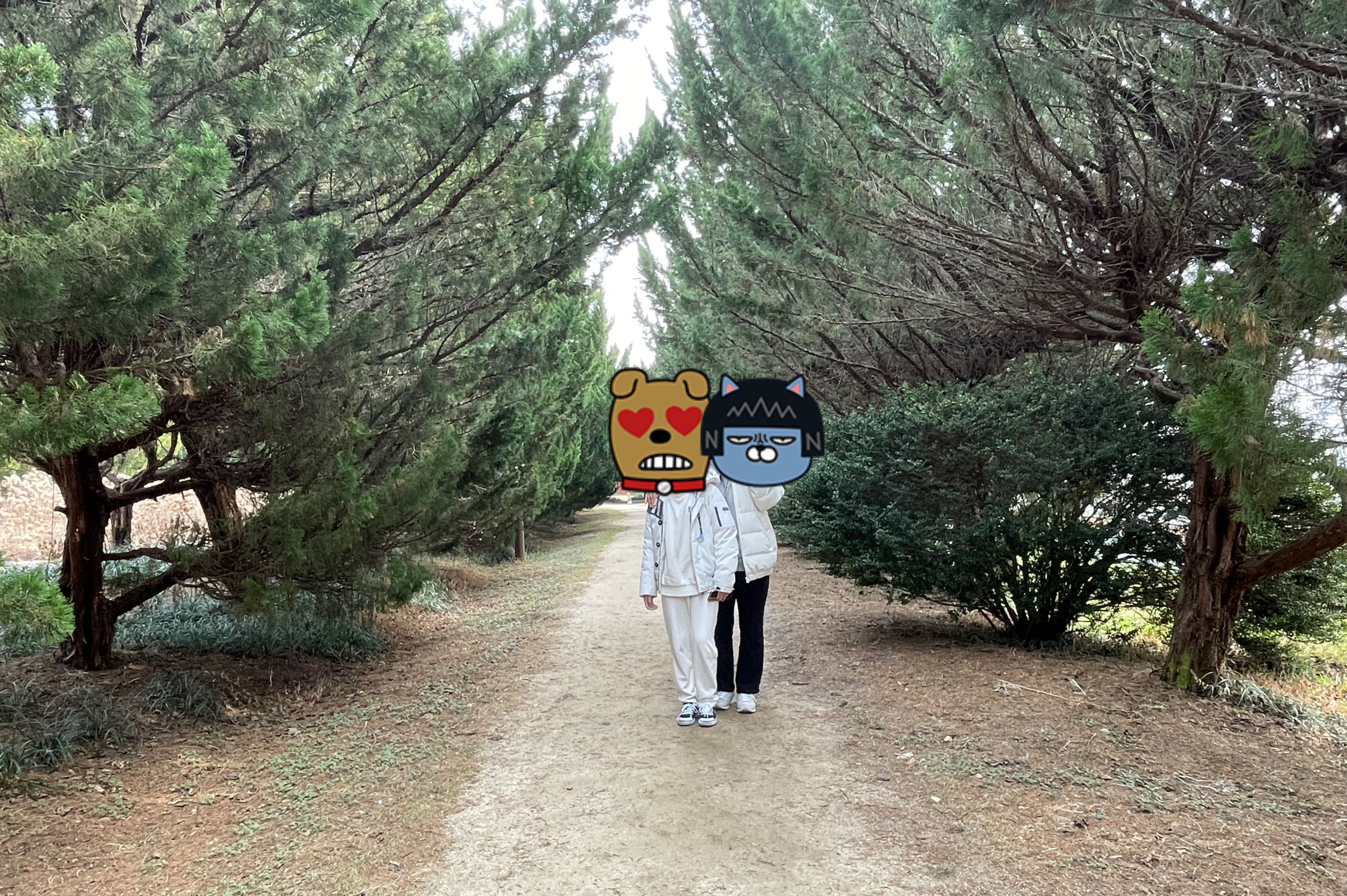 푸른 나무가 좌우로 늘어선 사이로 커플들이 인생샷을 찍고 있었다.