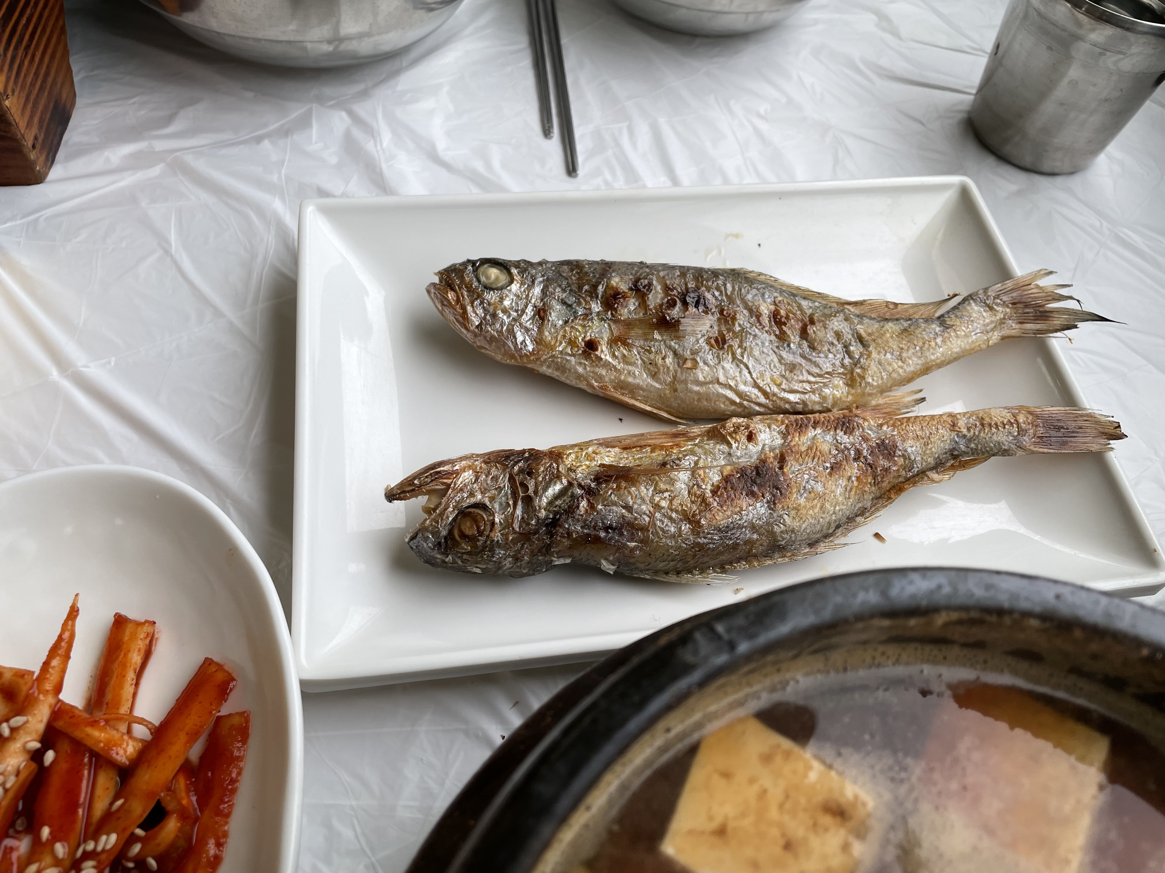 그리고 생선구이와 오래된 집된장으로 끓인 듯 한 된장찌개가 이어서 나왔다.