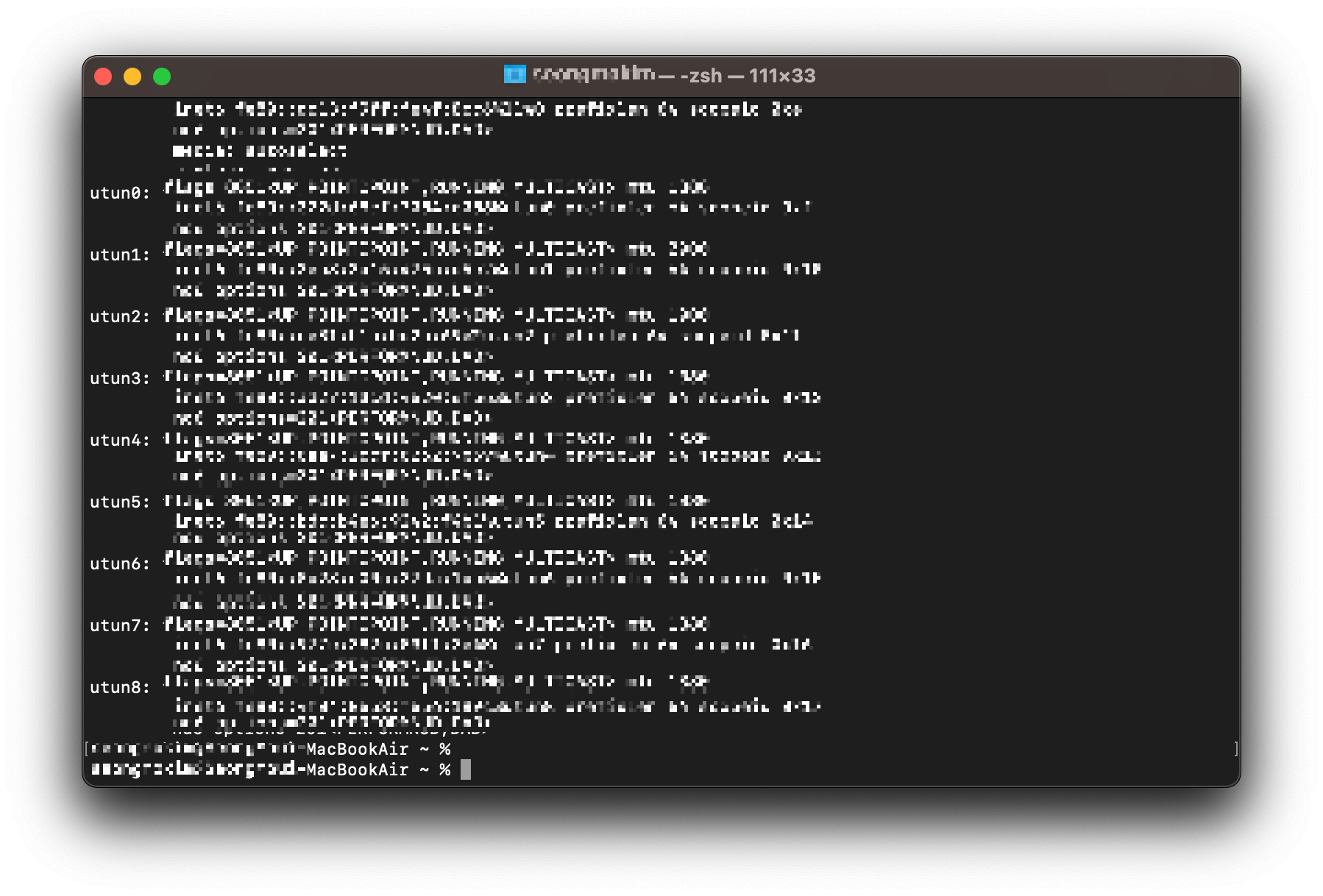 또는 터미널에서 'ifconfig'명령어를 연결 전과 후로 확인해보면 새로운 네트워크 인터페이스가 추가되면서 vpn이 연결되는 것을