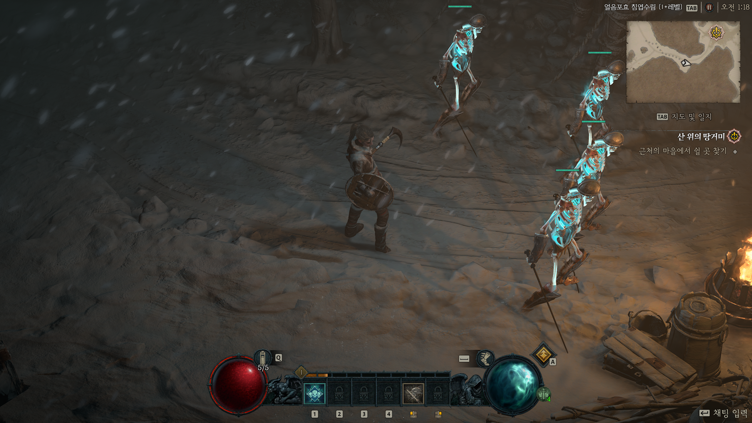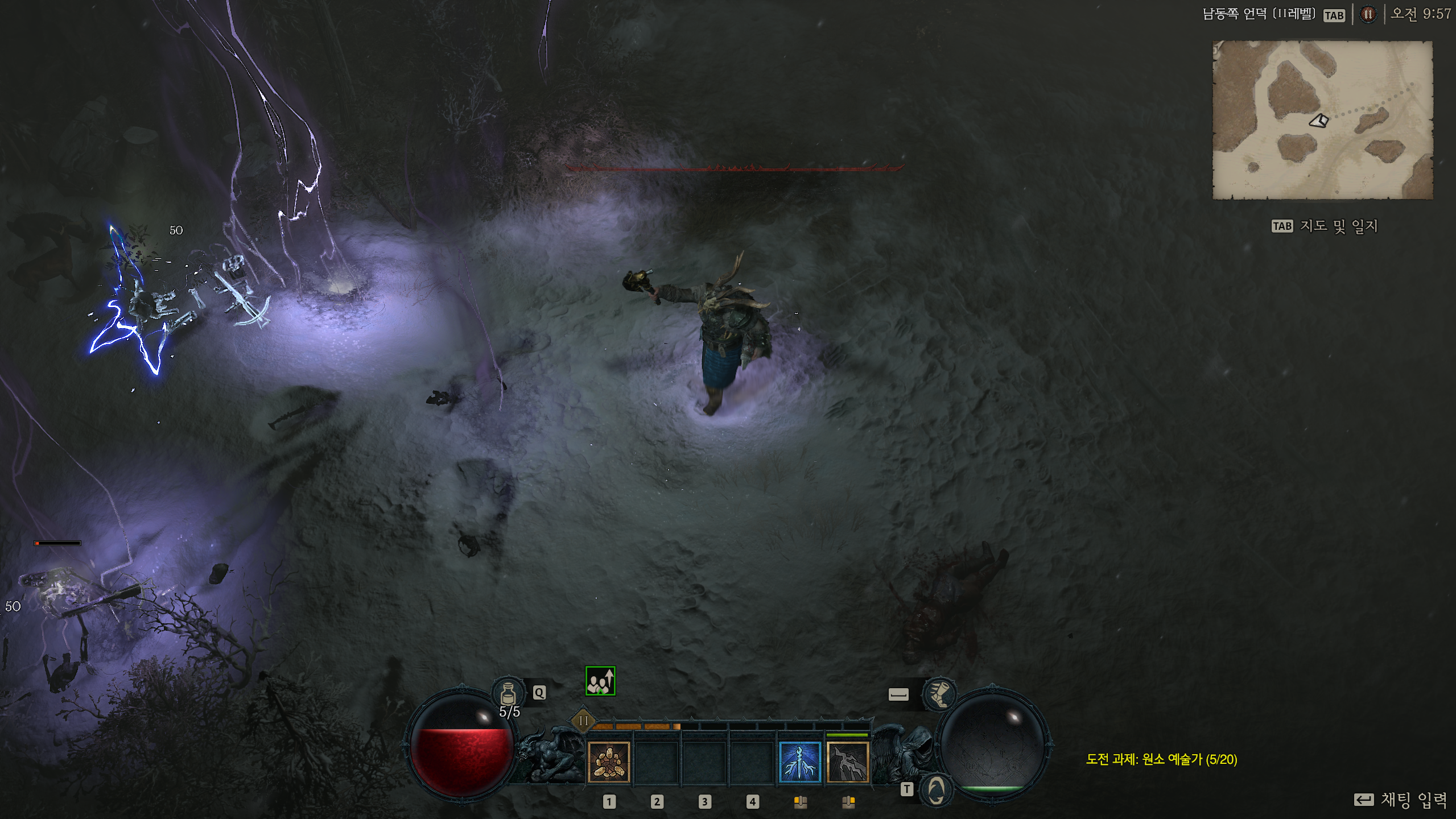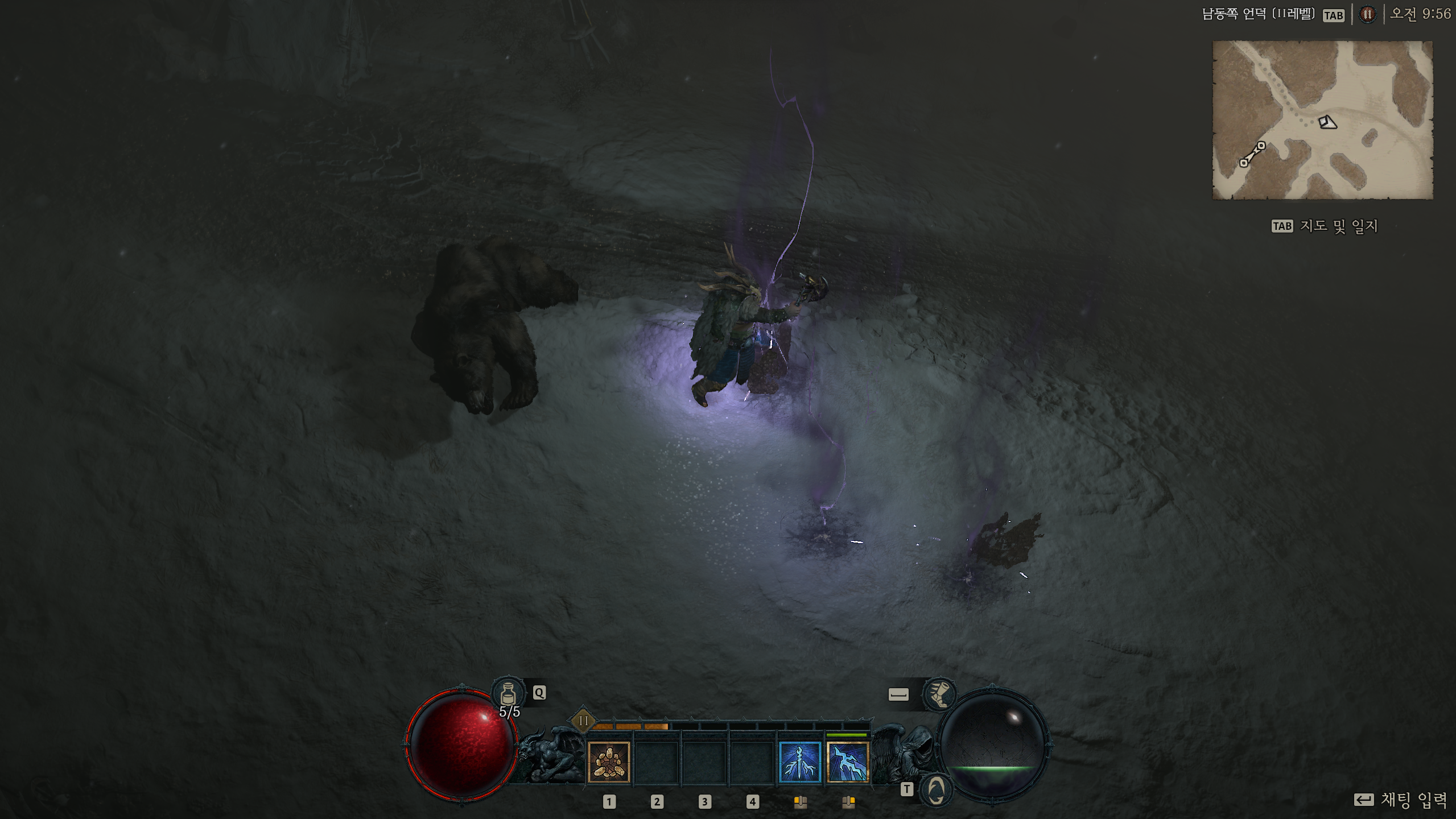 그래서 무기 설정은 양손무기가 아닌 한손 도끼나 철퇴 + 토템이었다. 토템에는 시전에 필요한 정신력 감소 옵션이 있어서 정확히 계산은 하지 않았지만 한손 무기의 빠른 속도 + 정신력 감소로 답답함은 해결했다.