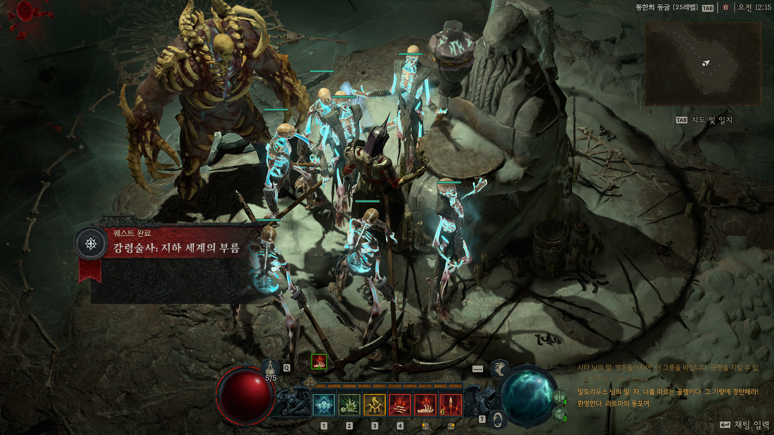 마지막으로 한가지 더 이야기 하자면 이번 디아블로는 액트1에 해당하는 지역만 갈 수 있다. 그리고 디아블로의 각 직업은 특정 레벨이 되면 직업 특수스킬 관련 퀘스트를 받는다. 강령술사는 골램이었고 드루이드는 '알 수 없음'이었다.